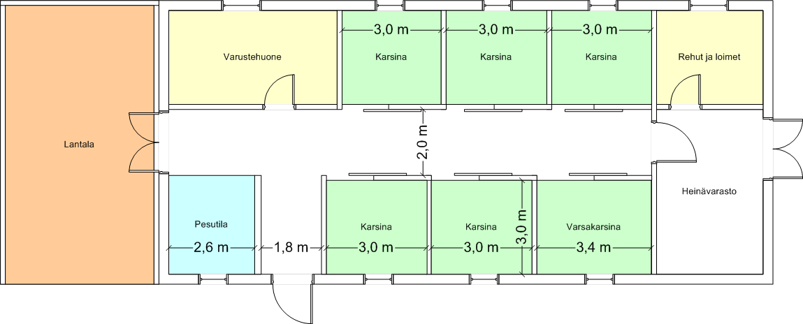 - Hevosen kiinnitys takaseinään ja käytävälle
